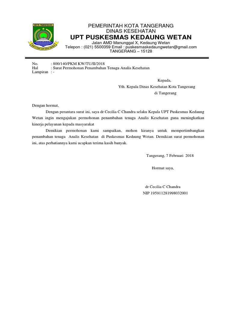 Pengajuan penambahan pegawai dengan kualifikasi yang jelas. Kedua jika ada pegawai dari data tersebut yang sebentar lagi harus melakukan pengajuan kenaikan gaji berkala maka subbagian umum dan kepegawaian membuat surat. Surat Lamaran Kerja Dokter Umum Ke Rumah Sakit - Kumpulan.